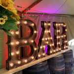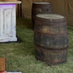 Large whiskey barrel - 2 included with large 'BAR' lights to provide shelf to support the lights